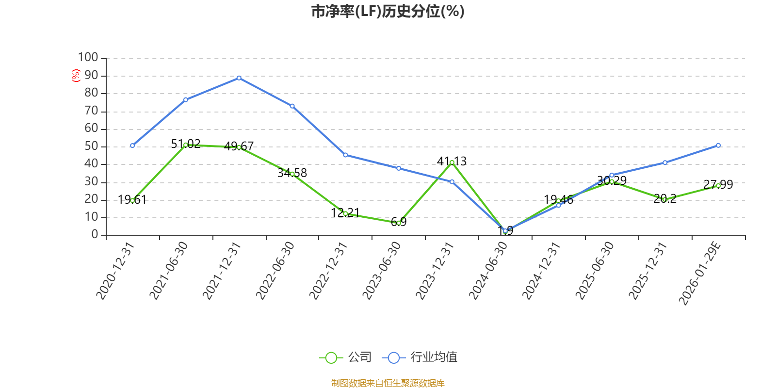 市盈率、市净率为负时,不显示当期分位数,会导致折线图中断。