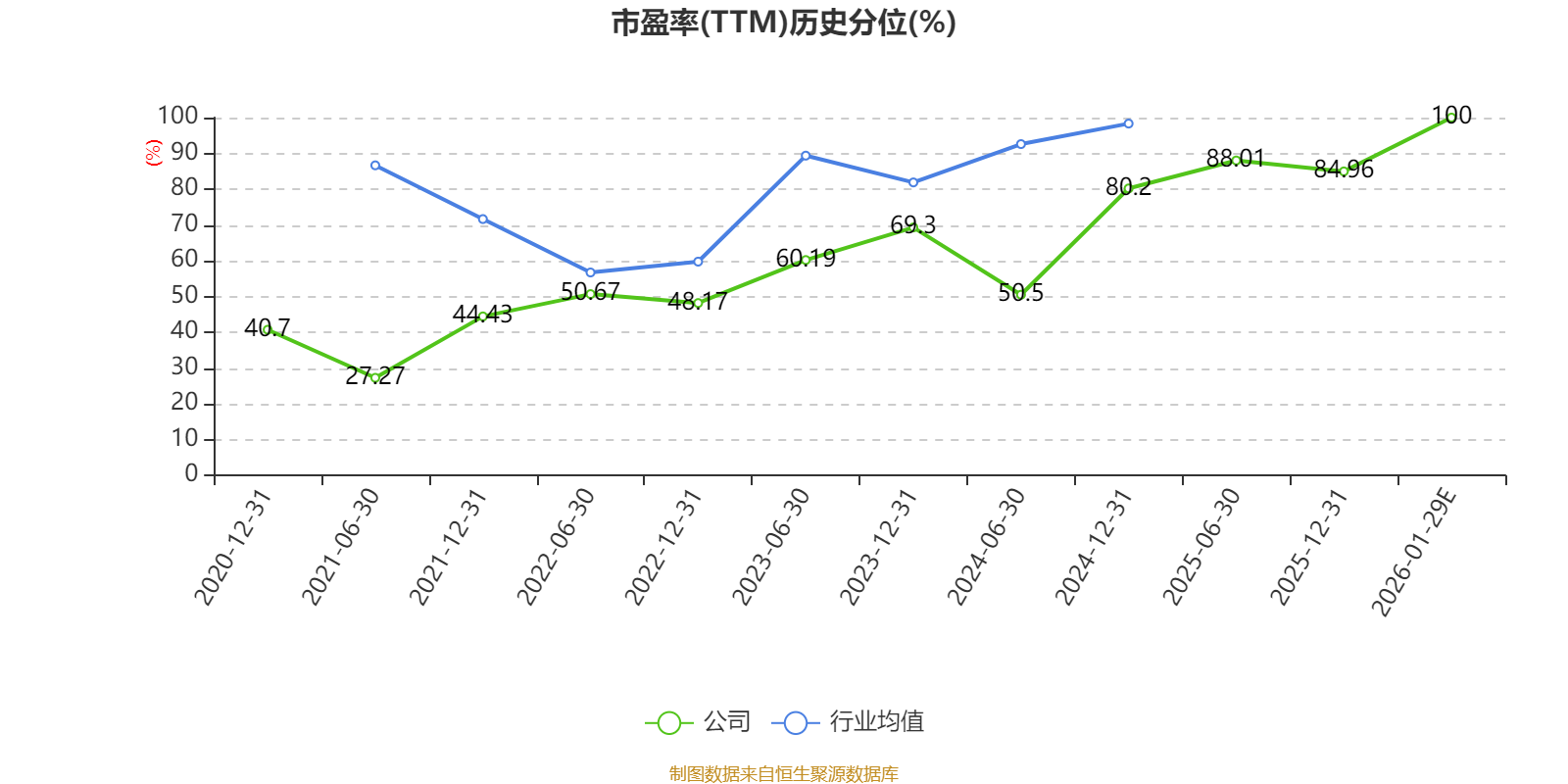 以本次披露业绩预告均值计算,公司近年市盈率(TTM)图如下所示: