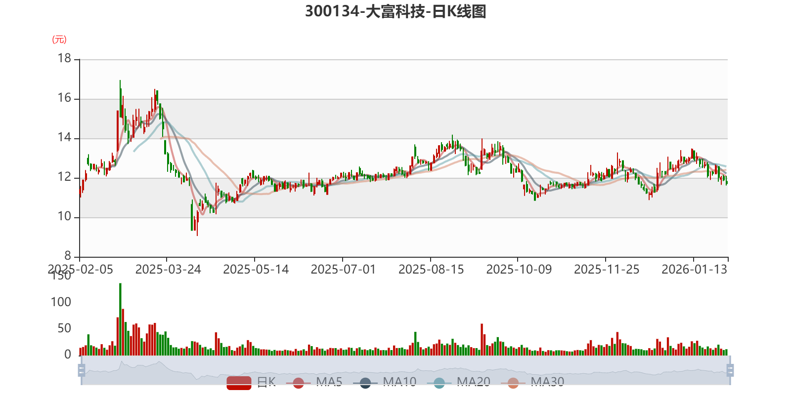 中证智能财讯大富科技(300134)1月29日晚间披露2025年度业绩预告,预计2025年归母净利润亏损2.5亿元至2.95亿元,上年同期亏损4.76亿元;扣非净利润亏损2.85亿元至3.3亿元,上年同期亏损4.91亿元。以最新收盘价计算,市净率(LF)约2.36倍,市销率(TTM)约3.81倍。
