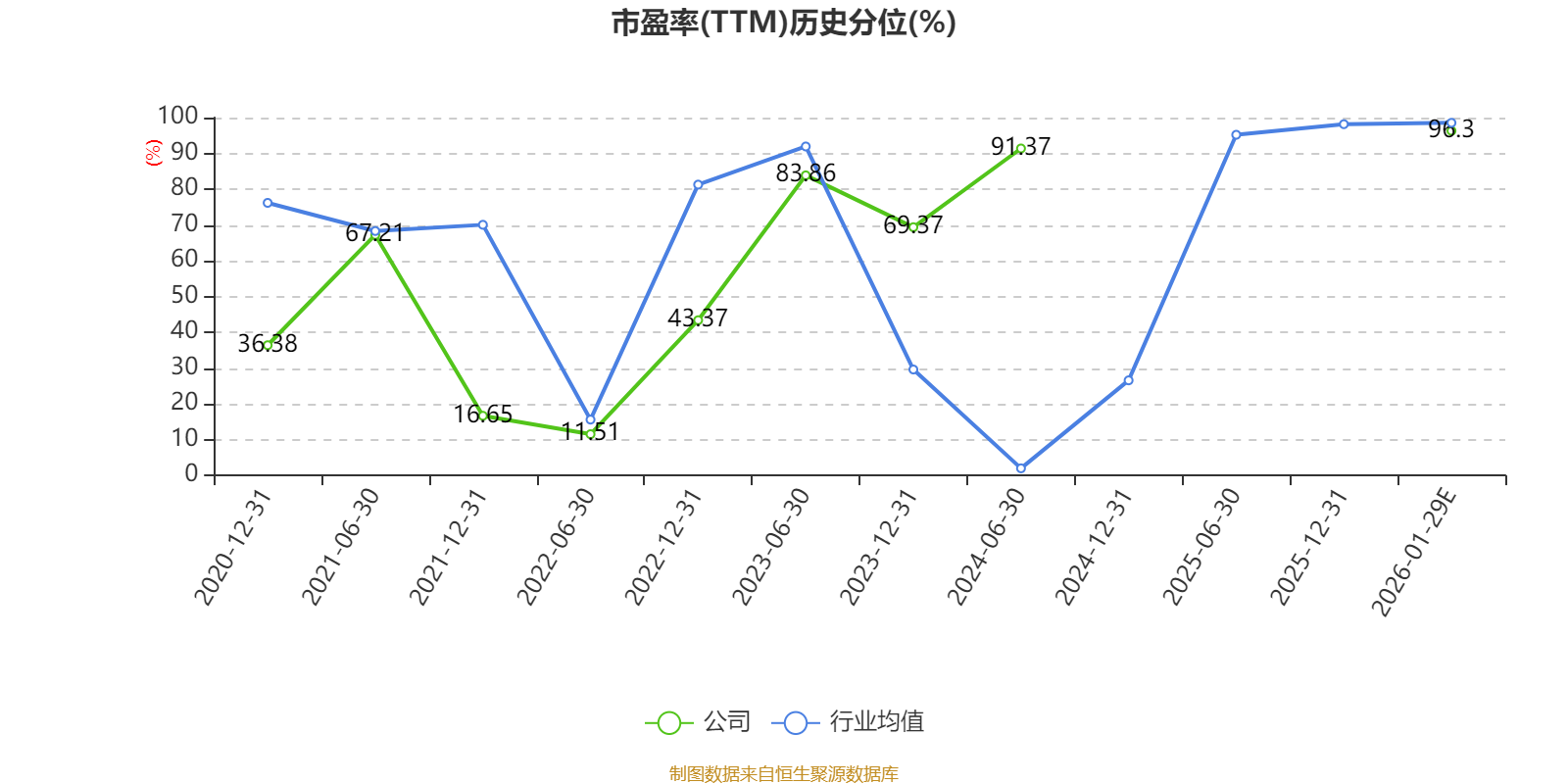 以本次披露业绩预告均值计算,公司近年市盈率(TTM)图如下所示: