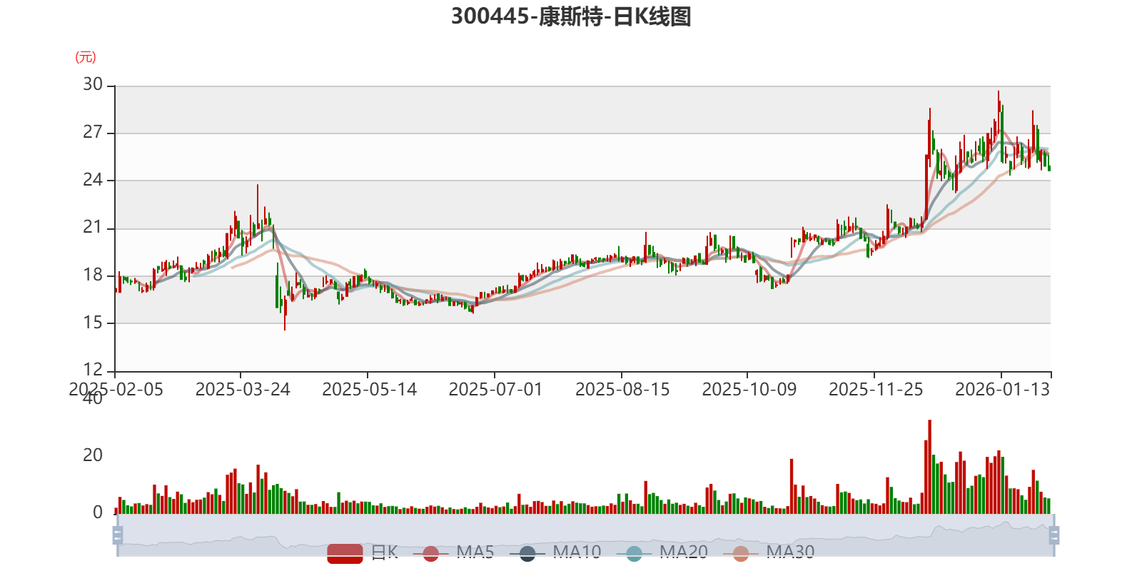 中证智能财讯康斯特(300445)1月29日晚间披露2025年度业绩预告,预计2025年归母净利润1.15亿元至1.25亿元,同比下降0.1%-8.48%;扣非净利润预计1.08亿元-1.15亿元,同比下降0.16%-6.24%。以1月29日收盘价计算,康斯特目前市盈率(TTM)约为41.79倍-45.62倍,市净率(LF)约4.12倍,市销率(TTM)约8.57倍。
