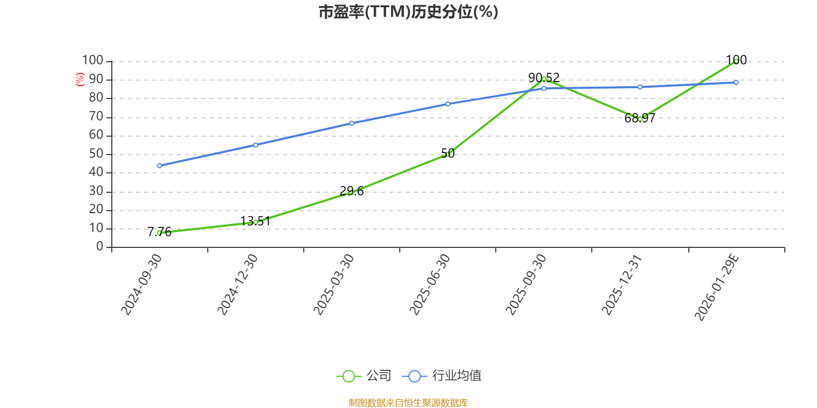 以本次披露业绩预告均值计算,公司近年市盈率(TTM)图如下所示: