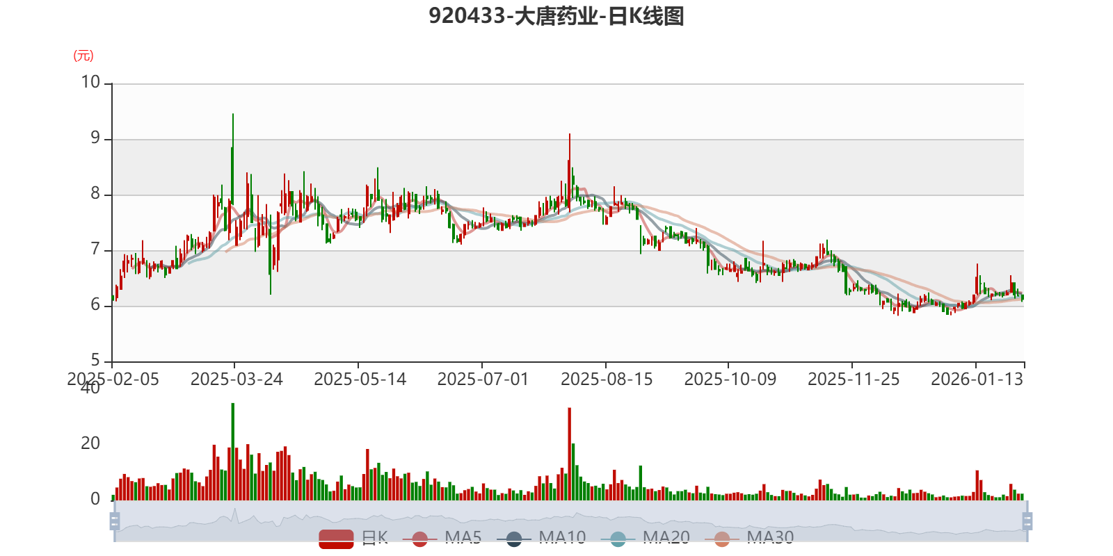 中证智能财讯大唐药业(920433)1月29日晚间披露2025年度业绩预告,预计2025年归母净利润亏损7000万元至9000万元,上年同期盈利1053.65万元。以最新收盘价计算,市净率(LF)约3.71倍,市销率(TTM)约10.32倍。
