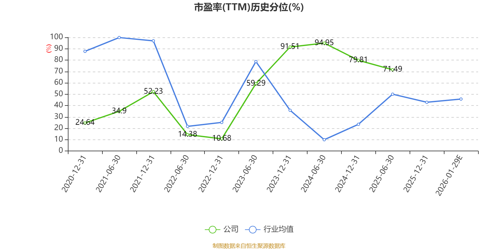 以本次披露业绩预告均值计算,公司近年市盈率(TTM)图如下所示: