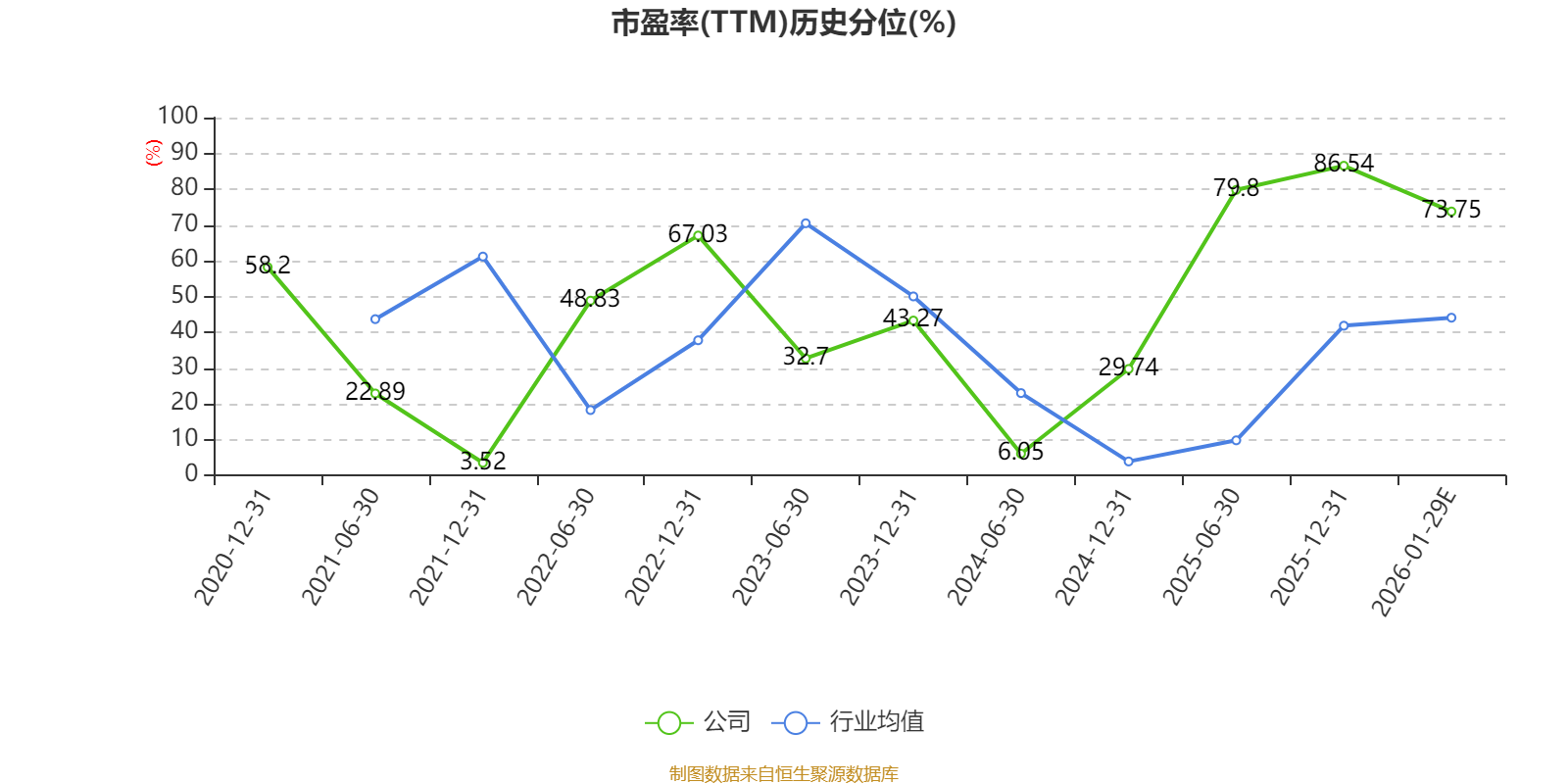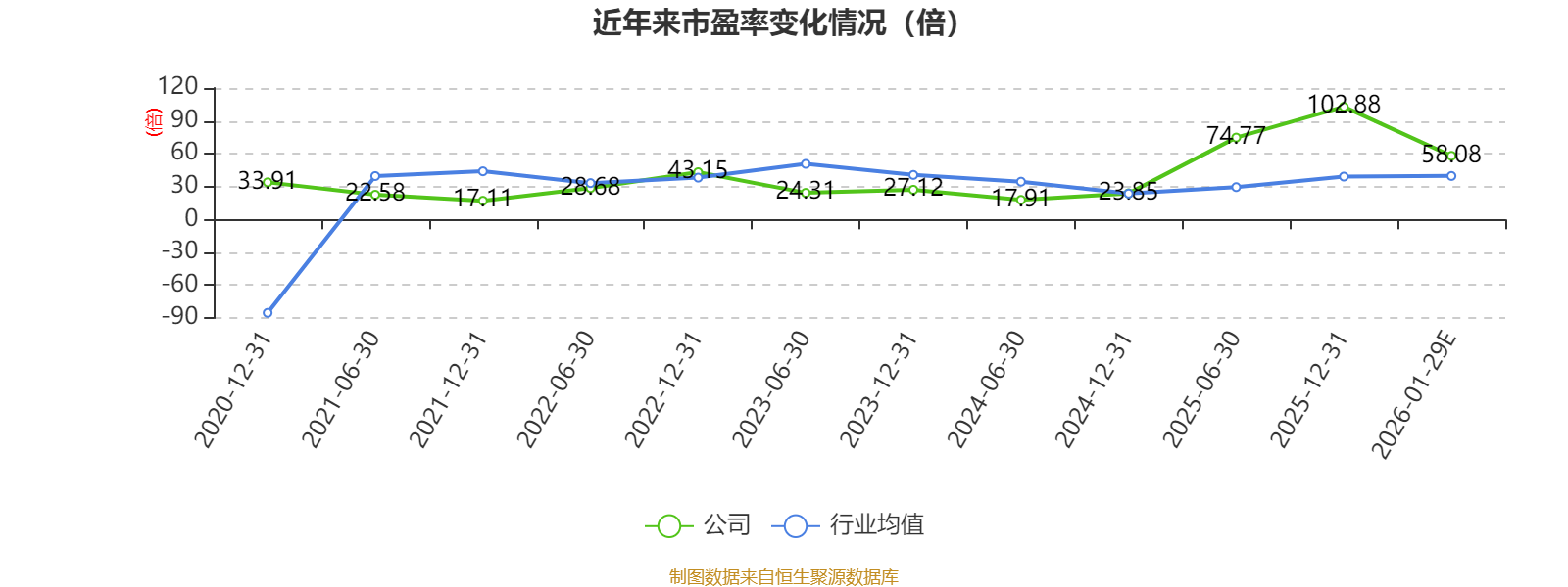 以本次披露业绩预告均值计算,公司近年市盈率(TTM)图如下所示: