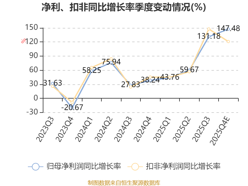 中证智能财讯生益科技(600183)1月29日晚间披露2025年度业绩预告,预计2025年归母净利润32.5亿元至34.5亿元,同比增长87%-98%;扣非净利润预计30.8亿元至32.8亿元,同比增长84%-96%。以1月29日收盘价计算,生益科技目前市盈率(TTM)约为48.86倍-51.87倍,市净率(LF)约10.85倍,市销率(TTM)约6.42倍。