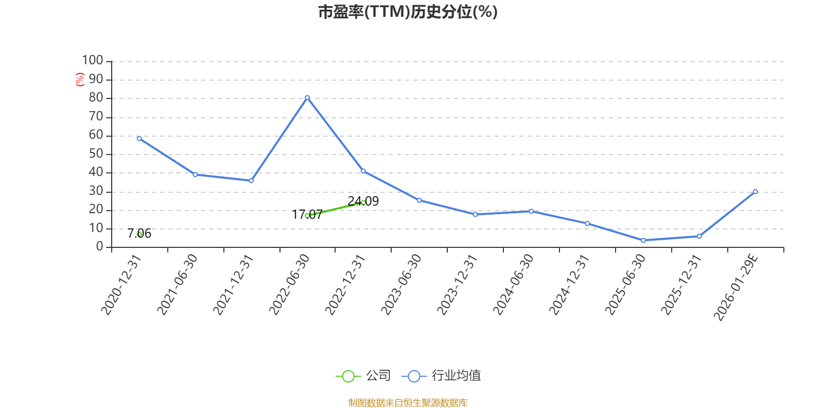 以本次披露业绩预告均值计算,公司近年市盈率(TTM)图如下所示: