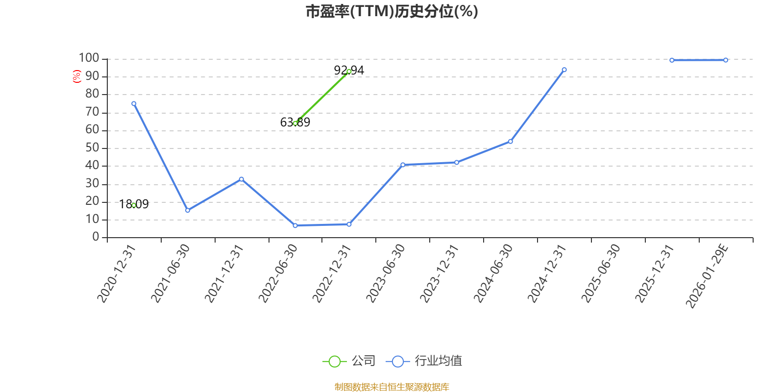 以本次披露业绩预告均值计算,公司近年市盈率(TTM)图如下所示: