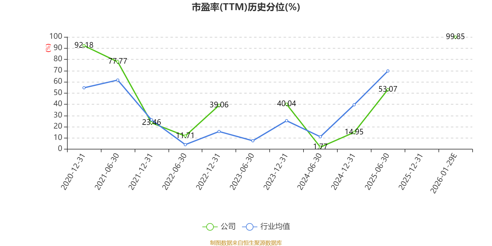 市盈率、市净率为负时,不显示当期分位数,会导致折线图中断。