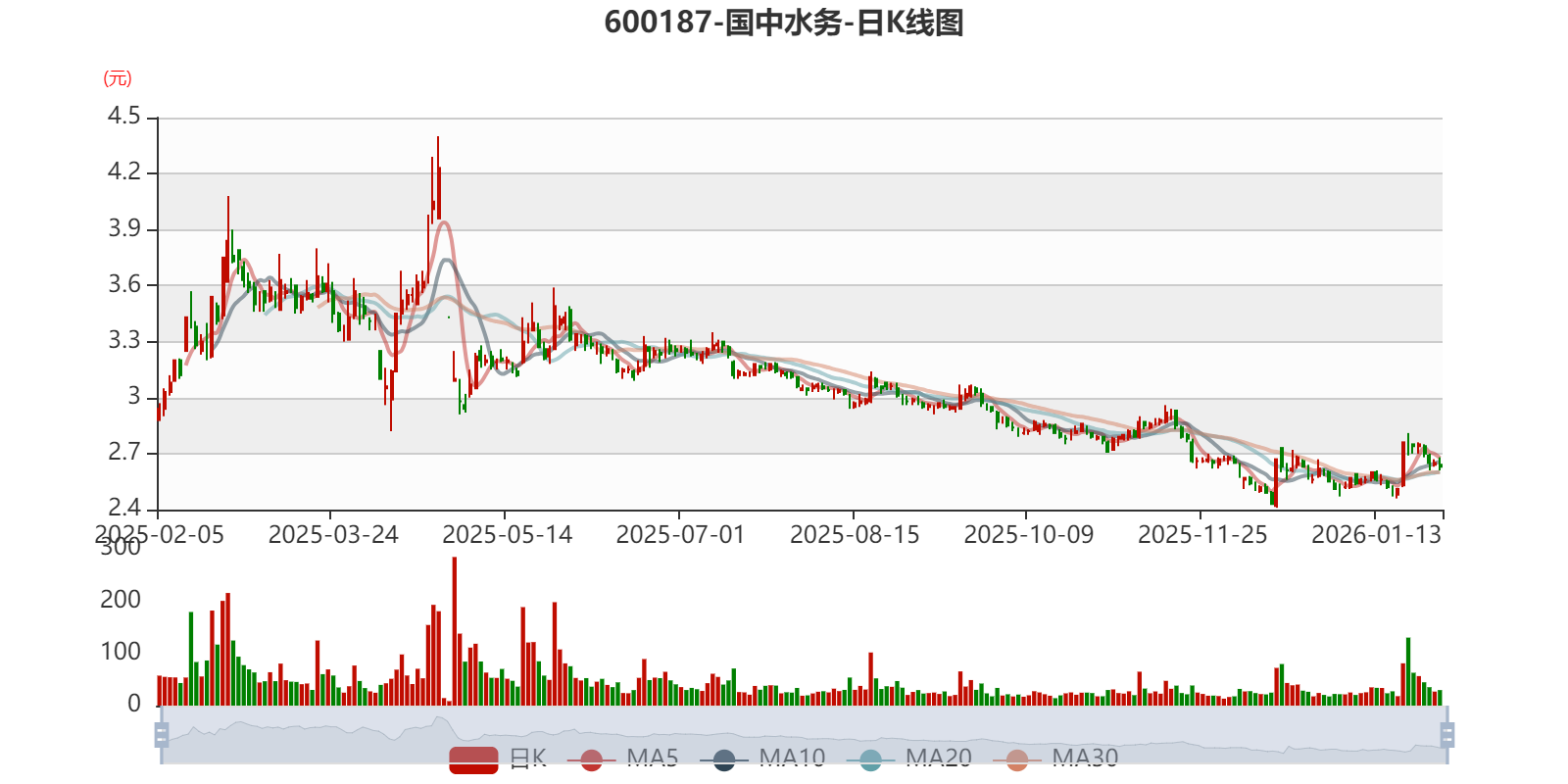 中证智能财讯国中水务(600187)1月29日晚间披露2025年度业绩预告,预计2025年实现营业收入2.1亿元至2.52亿元;归母净利润亏损1.04亿元至1.3亿元,上年同期盈利4357.92万元;扣非净利润预计900万元至1080万元。以最新收盘价计算,市净率(LF)约1.33倍,市销率(TTM)约18.37倍。