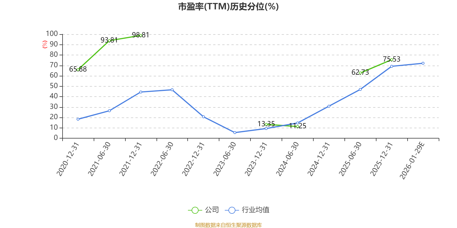 以本次披露业绩预告均值计算,公司近年市盈率(TTM)图如下所示: