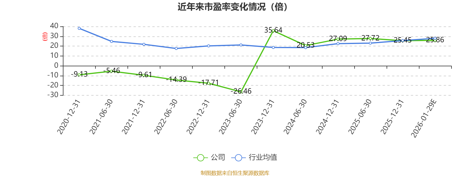 以本次披露业绩预告均值计算,公司近年市盈率(TTM)图如下所示: