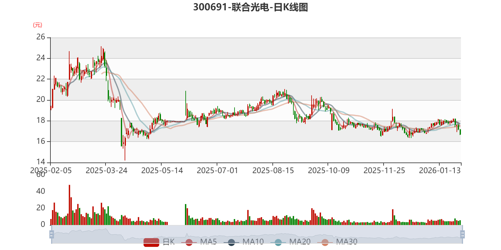 中证智能财讯联合光电(300691)1月29日晚间披露2025年度业绩预告,预计2025年归母净利润850万元至1250万元,同比下降67.59%-77.96%;扣非净利润亏损3000万元至4350万元,上年同期盈利2820.53万元。以1月29日收盘价计算,联合光电目前市盈率(TTM)约为359.66倍-528.92倍,市净率(LF)约2.79倍,市销率(TTM)约2.26倍。