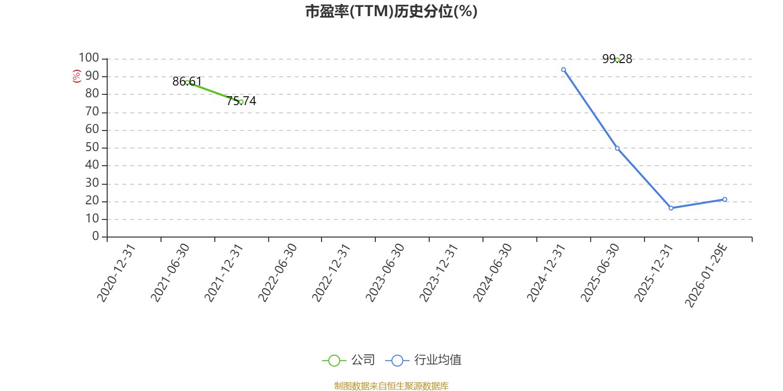 市盈率、市净率为负时,不显示当期分位数,会导致折线图中断。