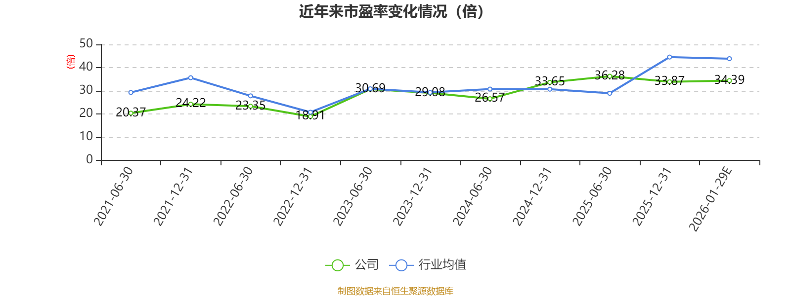 以本次披露业绩预告均值计算,公司近年市盈率(TTM)图如下所示: