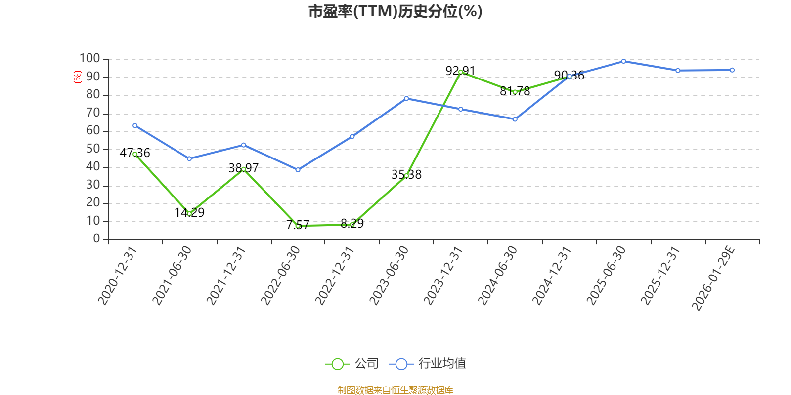 以本次披露业绩预告均值计算,公司近年市盈率(TTM)图如下所示: