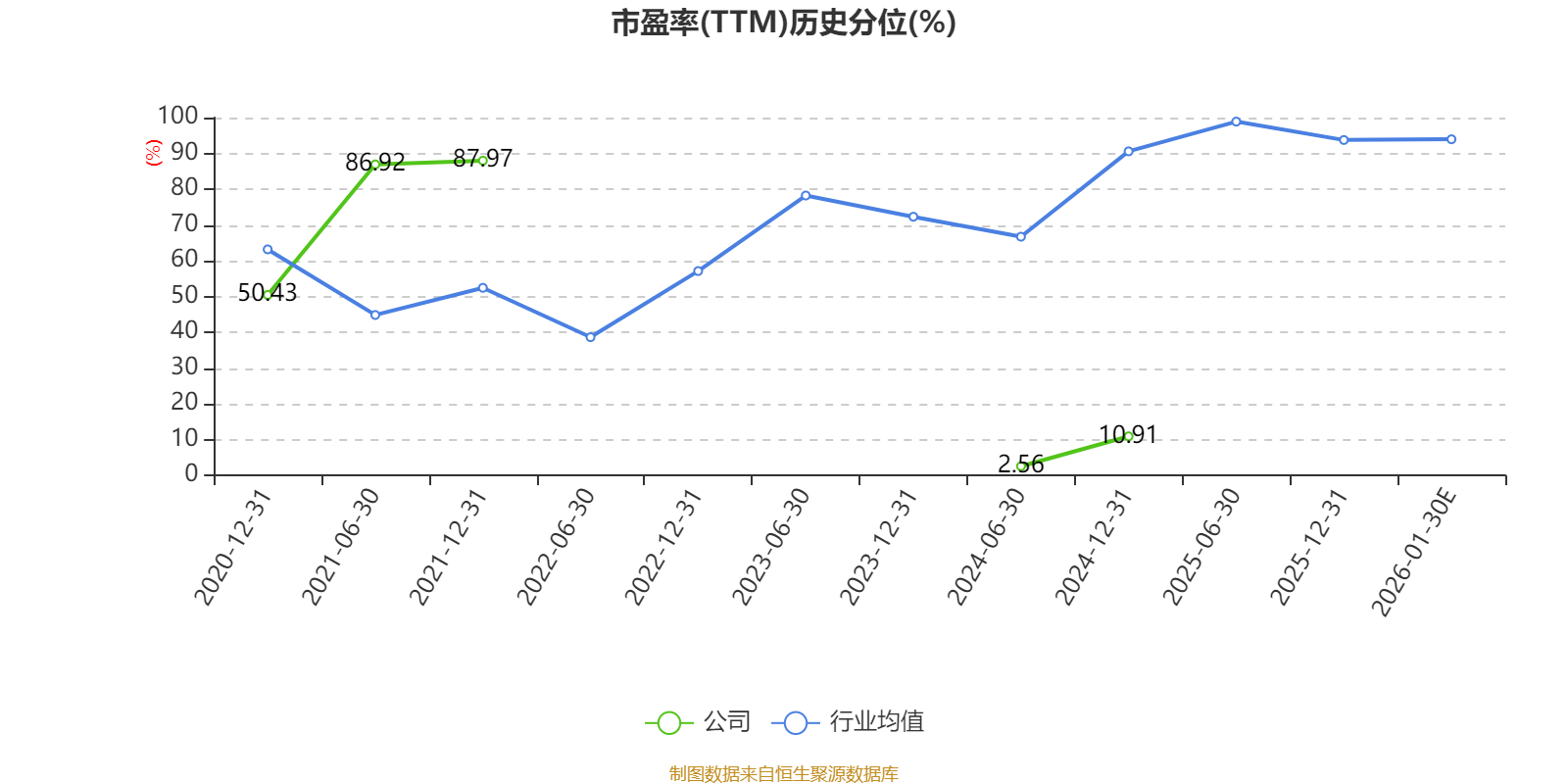 以本次披露业绩预告均值计算,公司近年市盈率(TTM)图如下所示: