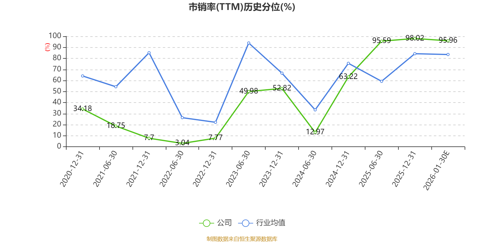 文中市盈率和市销率采用TTM方式,即以截至最近一期财报(含预报)12个月的数据计算。市净率采用LF方式,即以最近一期财报数据计算。三者的分位数计算区间均为公司上市以来至最新公告日。