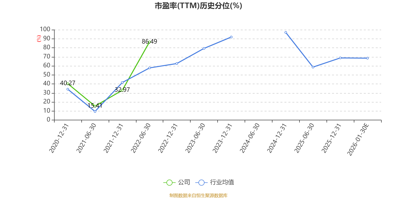 以本次披露业绩预告均值计算,公司近年市盈率(TTM)图如下所示: