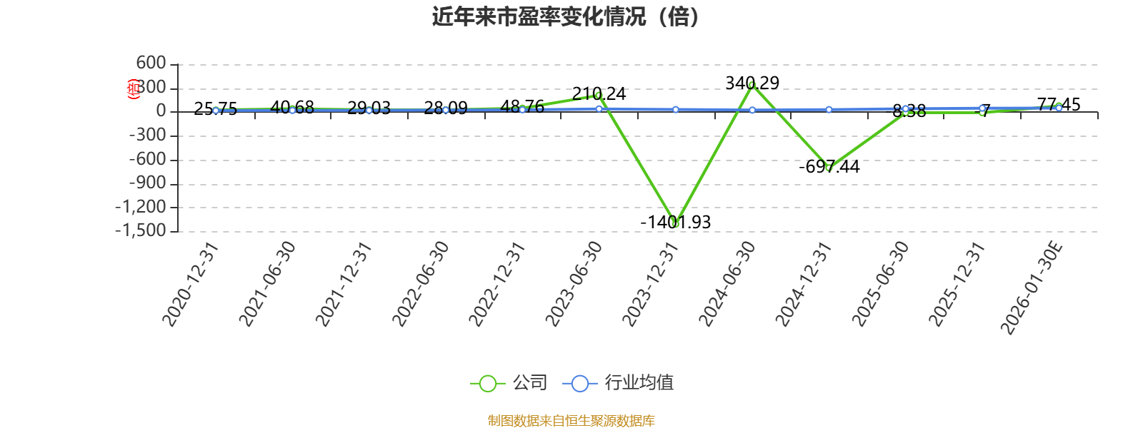 市盈率、市净率为负时,不显示当期分位数,会导致折线图中断。
