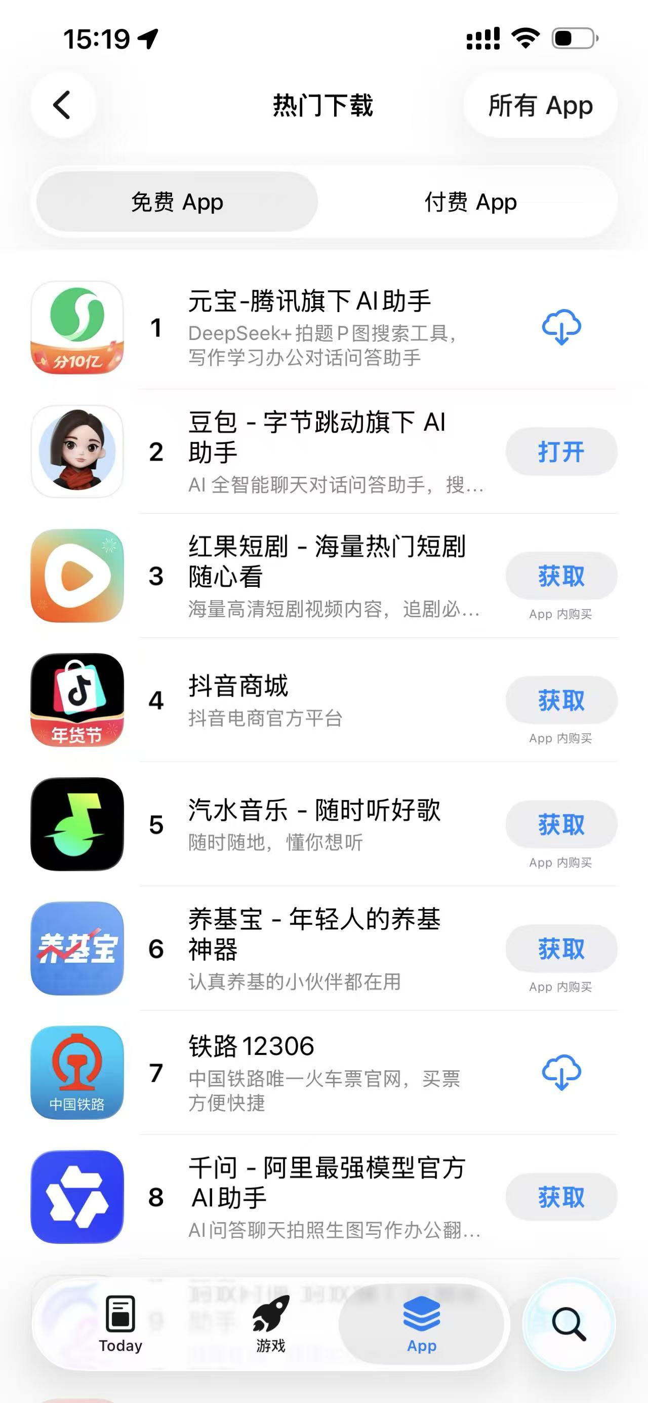 腾讯元宝App升至苹果商店免费App榜单第一名,此前宣布10亿现金红包活动开启。
