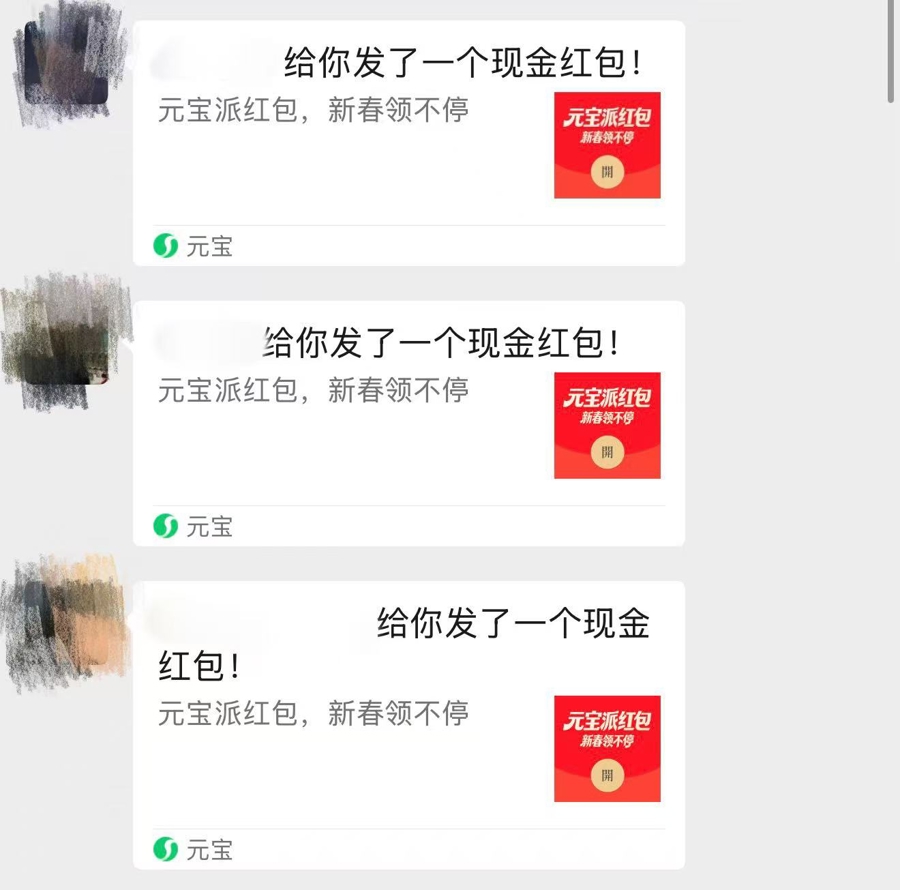 2月1日一早,“元宝派红包”链接就活跃在各大微信群,严重刷屏到有些群直接“全员禁言”。