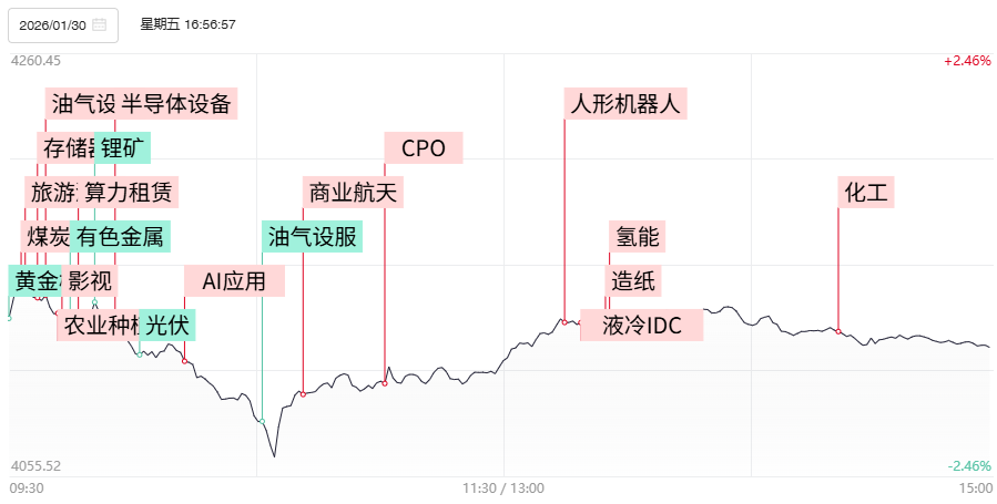 财联社2月2日电,上个交易日今日市场探底回升,三大指数涨跌不一,沪指早盘一度跌破4100点,最终跌幅接近1%,创业板指探底回升涨超1%。沪深两市成交额2.84万亿,缩量3945亿。1)近期海外科技巨头再度掀起算力基础设施军备竞赛,亚马逊正与OpenAI洽谈500亿美元投资,微软与Meta公布的最新季度财报资本开支也超预期上调。算力硬件端受上述多重利好,全天表现强势,杰普特、致尚科技、长飞光纤、环旭电子涨停,天孚通信、联特科技等创出历史新高。2)随着春节围绕发放红包引发的大模型间的激烈竞争,有望进一步催热算力领域需求,刺激算力租赁概念股城地香江、利通电子双双涨停,宏景科技盘中继续刷新历史高点。3)近日,希捷、SK海力士和三星电子等多家头部存储厂商发布业绩财报,2025年第四季度业绩均再超预期。存储产业链热度不减,恒烁股份、澜起科技、普冉股份、中微半导均创历史新高。与此同时,受益美光等存储大厂密集扩产动作,半导体设备、封测等方向热度同样居高不下,太极实业、柏诚股份涨停,华峰测控、华康洁净等涨超10%。4)商务大数据显示,1月19日至25日,全国食用农产品市场价格比前一周上涨0.9%,农产品价格进入底部回升通道,刺激农业板块逆势活跃,种子股农发种业、登海种业、万向德农等涨停,秋乐种业、神农种业均涨超10%。
