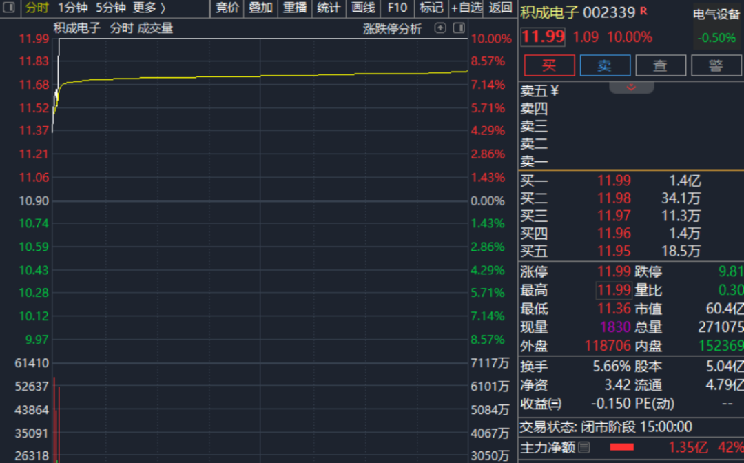 今日(2月2日),特高压概念股逆市走强。其中,积成电子开盘后直线拉升,3分钟内就封死涨停板。紧随其后,保变电气、森源电气、大连电瓷、汉缆股份、电科院等陆续涨停。