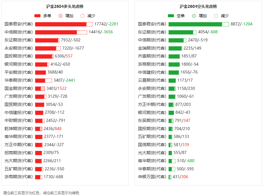 沪金龙虎榜 | 主力合约今日减仓下行 多空双方均呈退场态势