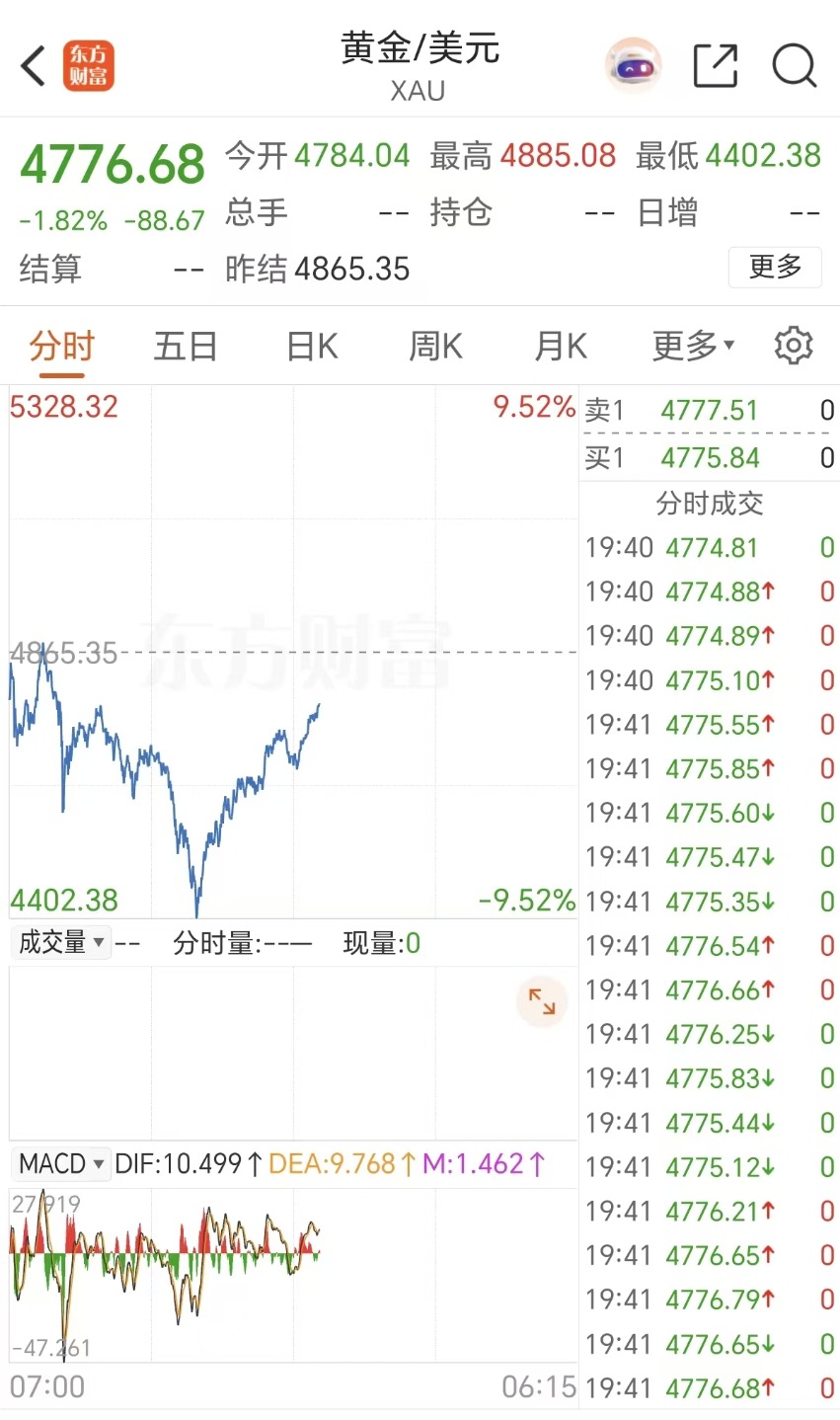 不过在下跌情绪宣泄后,现货黄金与白银的空头情绪缓解,分时图上走出反弹,截至发稿,黄金从日内一度跌超9%,收窄至跌2%;白银也从日内跌超15%,收窄至跌超1%。