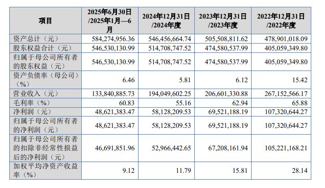 从业绩来看,2022年至2024年,文峰光电营业收入分别为2.67亿元、2.07亿元和1.94亿元,同期归母净利润分别为1.07亿元、6952万元和5813万元。其中,2023年文峰光电营业收入同比下滑22.67%,净利润锐减35.22%;2024年,下滑趋势仍未扭转,营收和净利润继续分别下降6.08%和16.39%。
