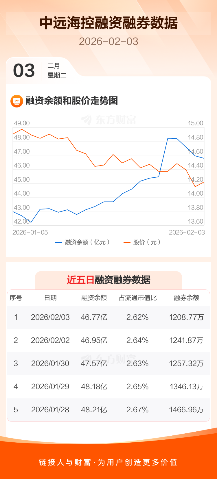交易所最新数据显示,中远海控于2026年2月3日获融资买入5588.55万元,融资偿还7388.51万元,当日融资净偿还1799.96万元。目前,该股融资余额46.77亿,占流通市值比例为2.62%。