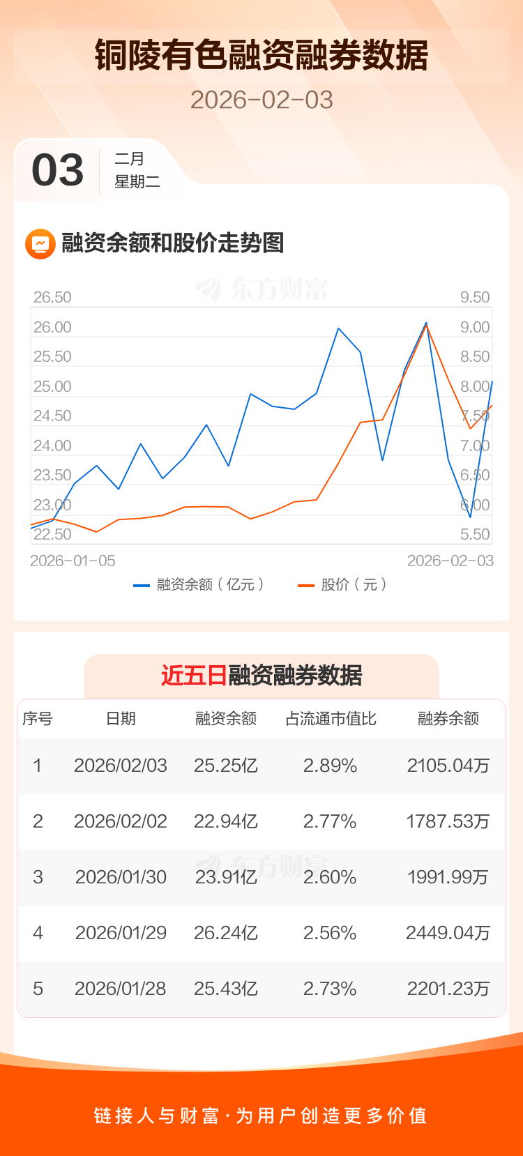 交易所最新数据显示,铜陵有色于2026年2月3日获融资买入8.88亿元,融资偿还6.57亿元,当日融资净买入2.31亿元。目前,该股融资余额25.25亿,占流通市值比例为2.89%。