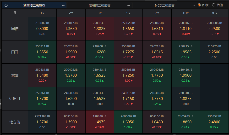 截至今日17:30,利率市场收益率多数下行,10Y国债下行0.4bp至1.81%,30Y国债下行0.15bp至2.25%。信用市场收益率多数上行,2Y期AAA信用债上行1bp至1.77%。债市早盘上涨。中国央行开展1055亿元7天期逆回购操作,净回笼2965亿元。资金面中性,资金情绪指数47,资金价格较昨日下跌,DR001在1.32%附近,DR007在1.49%附近。