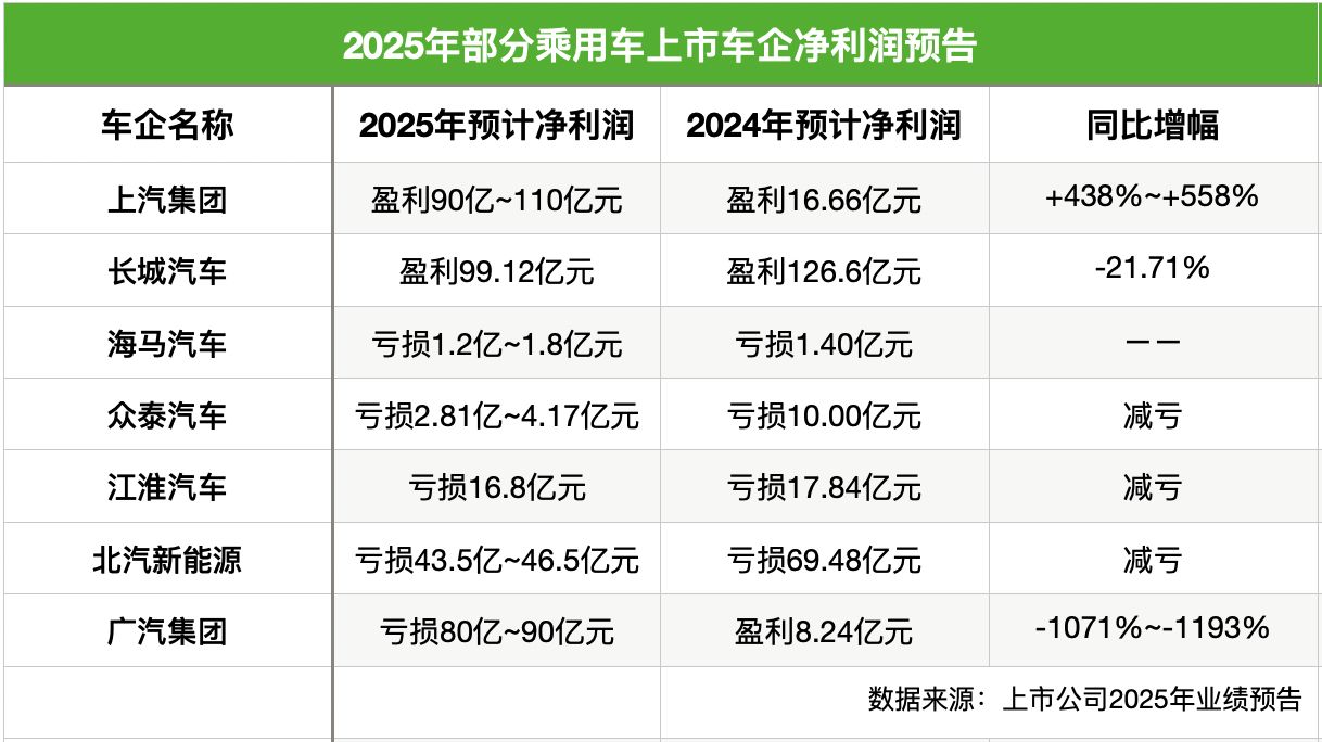 近期,各大车企陆续披露了2025年度的业绩预告。