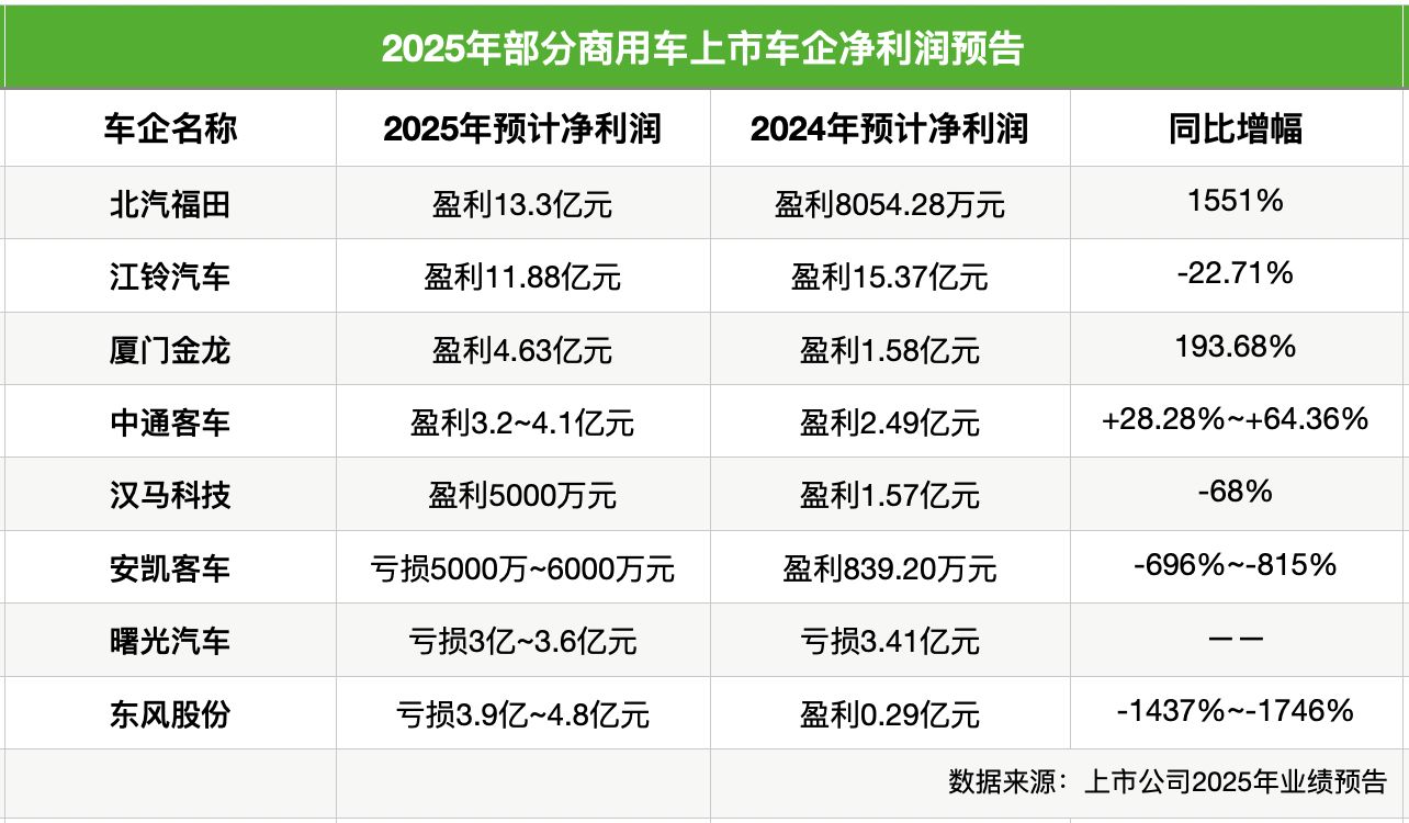 另一方面,安凯客车、曙光汽车及东风股份均预计2025年难以实现盈利。相较于2024年,安凯客车和东风股份的净利润预计将显著缩水,曙光汽车的亏损状况则与上年大致相当。