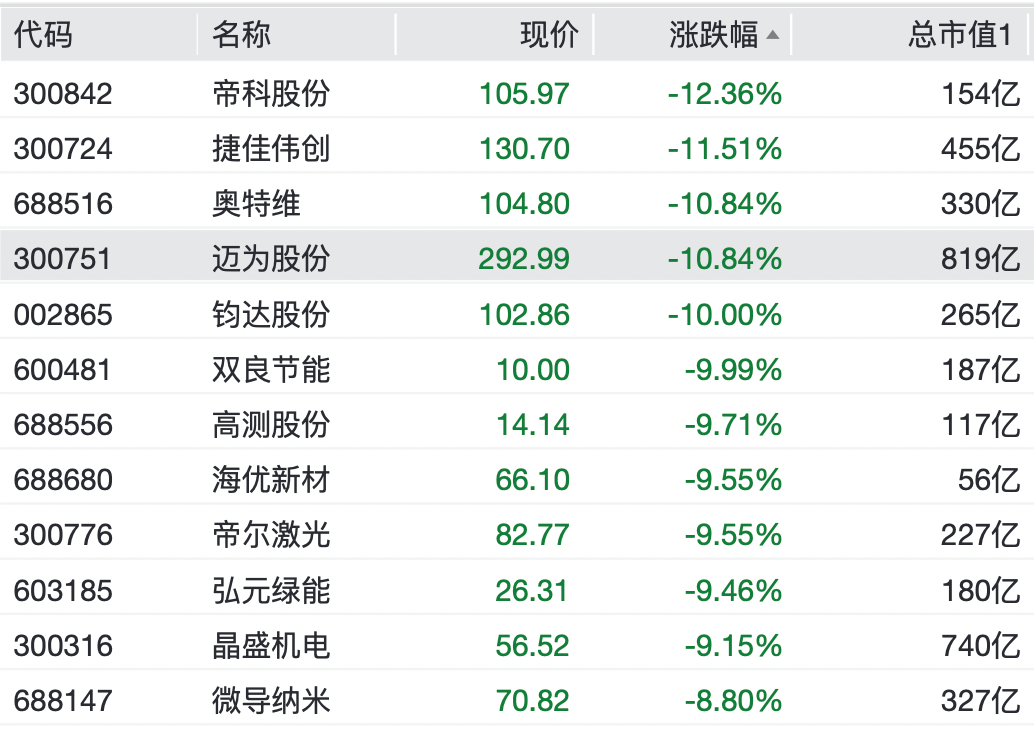 大科技延续回调光伏板块开盘暴跌