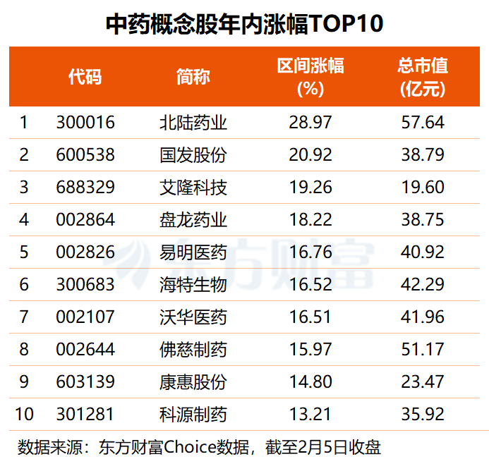 2月6日早盘,中药概念股集体走高,特一药业一字涨停,汉森制药成功封板,振东制药涨超13%,生物谷、恩威医药、大唐药业奇正藏药等多股跟涨。分析指出,板块的异动与昨日盘后印发的一份重磅文件有关。