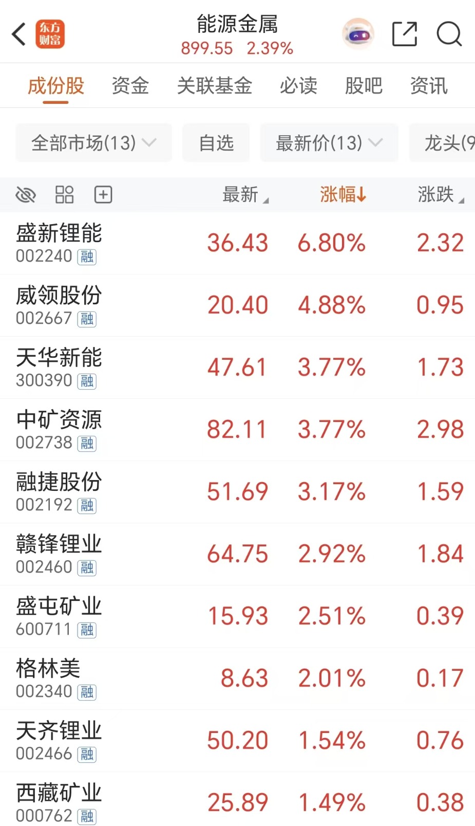 受益涨价的还有锂电概念股,盛新锂能涨近7%,天华新能、中矿资源等跟涨。