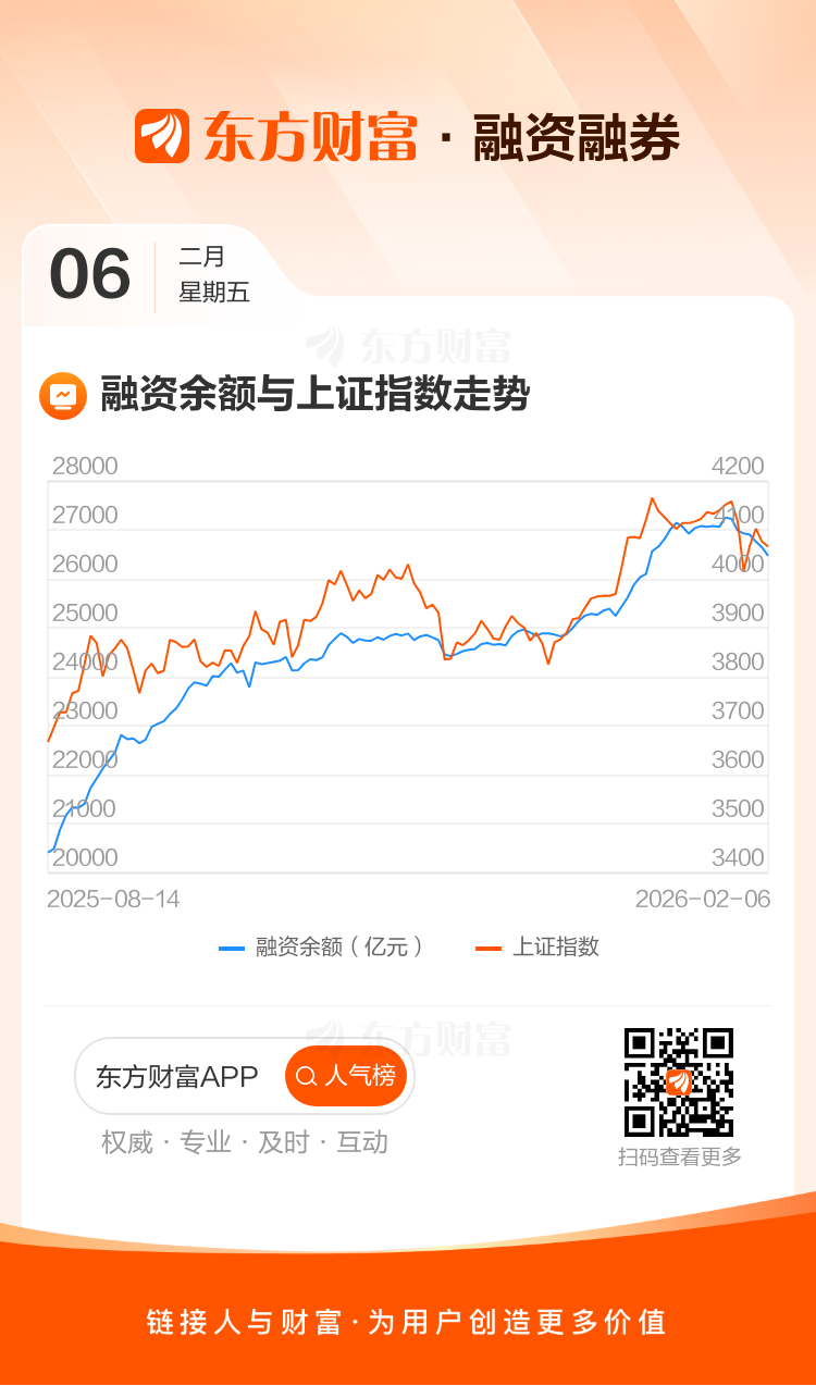 02月06日A股三大指数集体收跌,杠杆资金呈净卖出之势,当天融资余额2.65万亿,较上一交易日减少170.21亿。