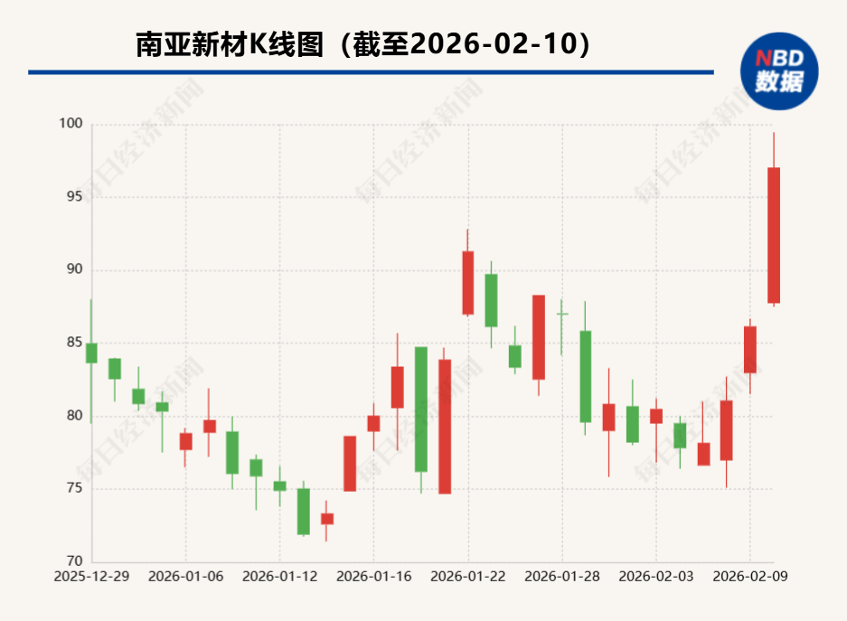 2月10日,A股PCB(印制线路板)板块集体大涨,南亚新材(SH688519,股价97.00元,总市值227.73亿元)成为板块领涨标的。