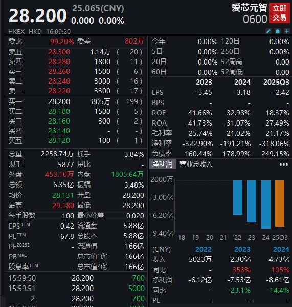 爱芯元智是首家在港股上市的边缘计算AI芯片企业,不过爱芯元智本次上市首日表现较为一般,以平价收盘,总市值达到166亿港元。