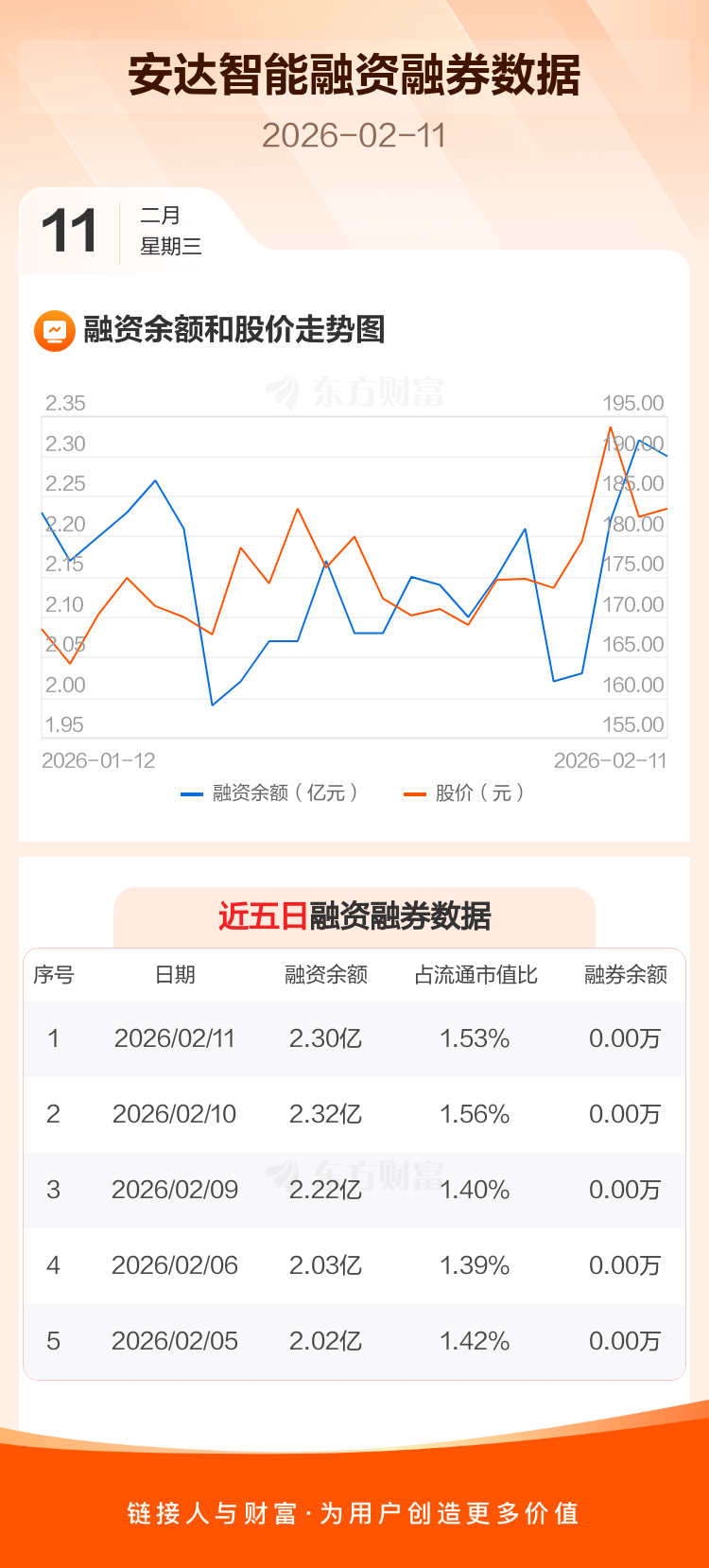 交易所最新数据显示,安达智能于2026年2月11日获融资买入700.34万元,融资偿还946.51万元,当日融资净偿还246.18万元。目前,该股融资余额2.30亿,占流通市值比例为1.53%。