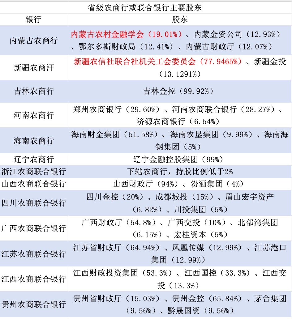 此外,省级农商行、省级农商联合银行在组建时引入了省财政、省金控等股东,但一些“奇怪”的主体也成为省级农商行的大股东。比如内蒙古农商行、新疆农商行的第一大股东分别是内蒙古自治区农村金融学会、新疆维吾尔自治区农村信用社联合社机关工会委员会,这又是何原因?
