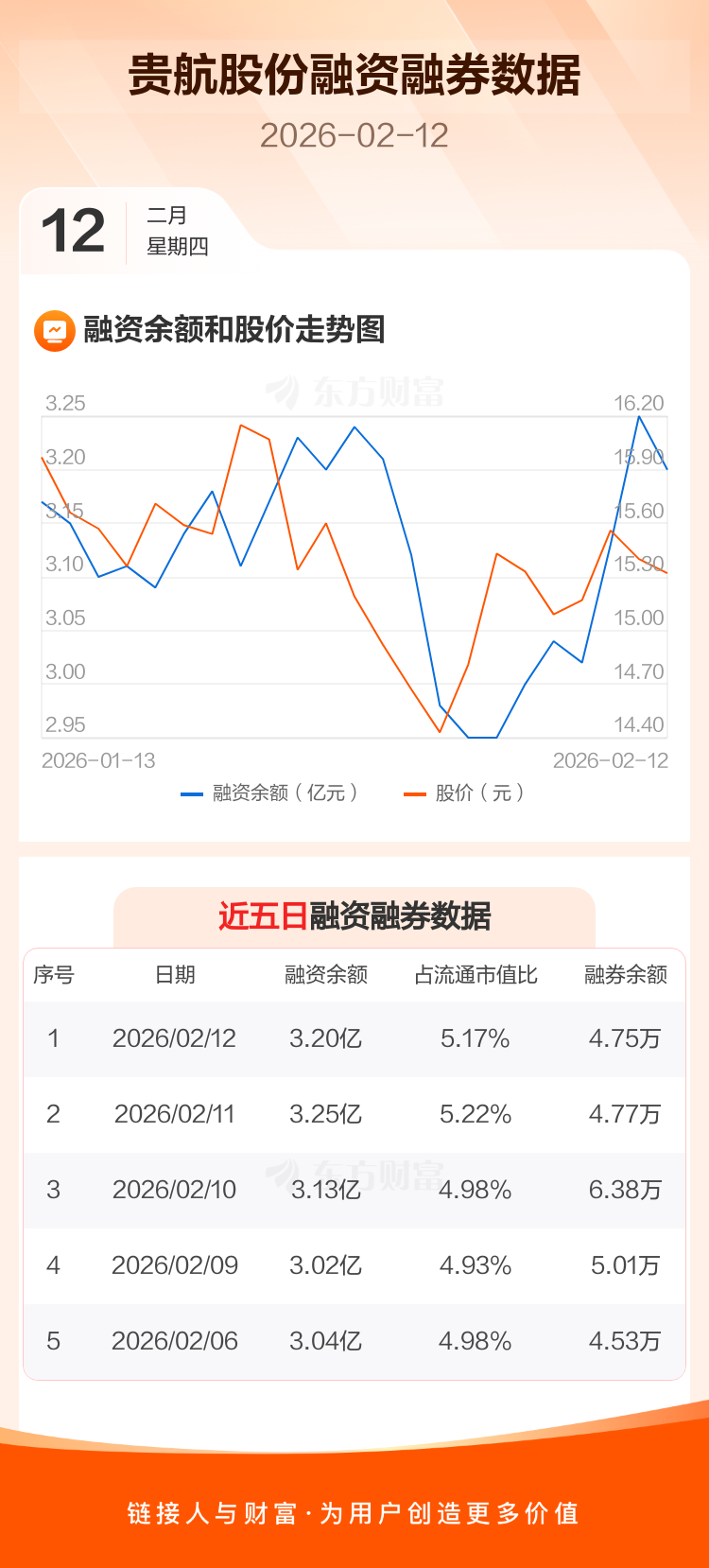 交易所最新数据显示,贵航股份于2026年2月12日获融资买入451.33万元,融资偿还959.17万元,当日融资净偿还507.84万元。目前,该股融资余额3.20亿,占流通市值比例为5.17%。