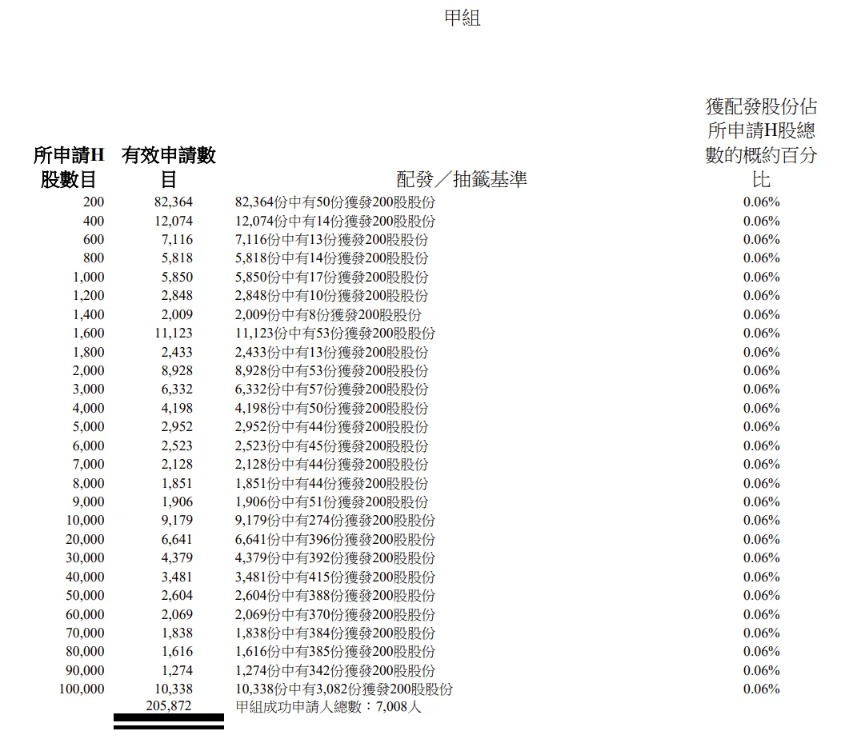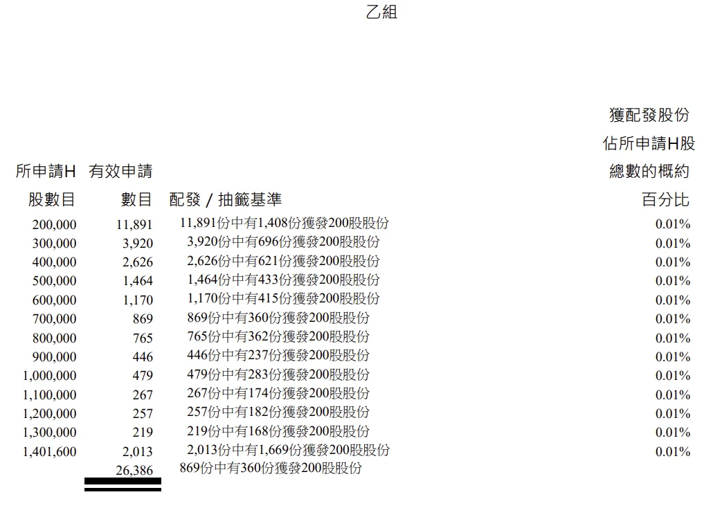 公开发售阶段海致科技集团获5065.06倍认购,公开发售的发售股份最终数目为280.32万股股份,占发售股份总数的约10%。合共接获约23.23万份有效申请,受理申请数目约14016份,申购一手获配发股份占所申请股份总数的概约百分比为0.06%。