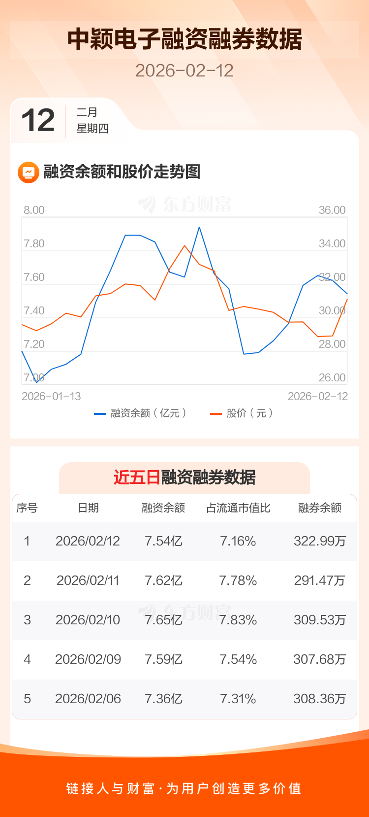 交易所最新数据显示,中颖电子于2026年2月12日获融资买入1.02亿元,融资偿还1.09亿元,当日融资净偿还747.01万元。目前,该股融资余额7.54亿,占流通市值比例为7.16%。