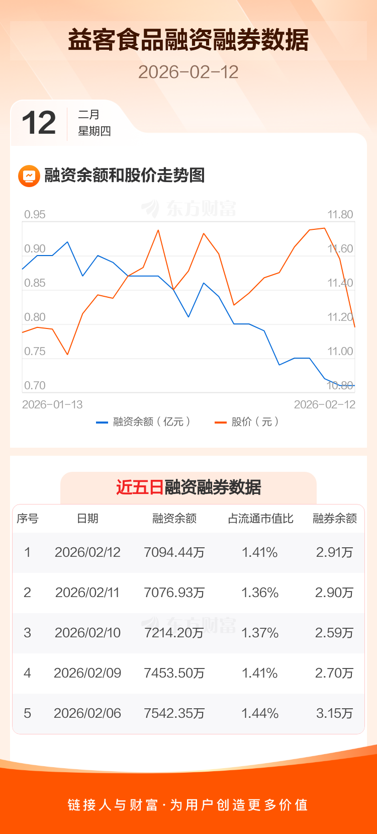 交易所最新数据显示,益客食品于2026年2月12日获融资买入712.90万元,融资偿还695.39万元,当日融资净买入17.51万元。目前,该股融资余额7094.44万,占流通市值比例为1.41%。