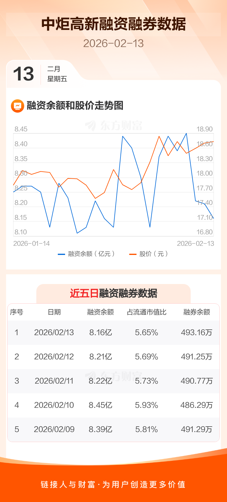交易所最新数据显示,中炬高新于2026年2月13日获融资买入3022.37万元,融资偿还3477.80万元,当日融资净偿还455.43万元。目前,该股融资余额8.16亿,占流通市值比例为5.65%。