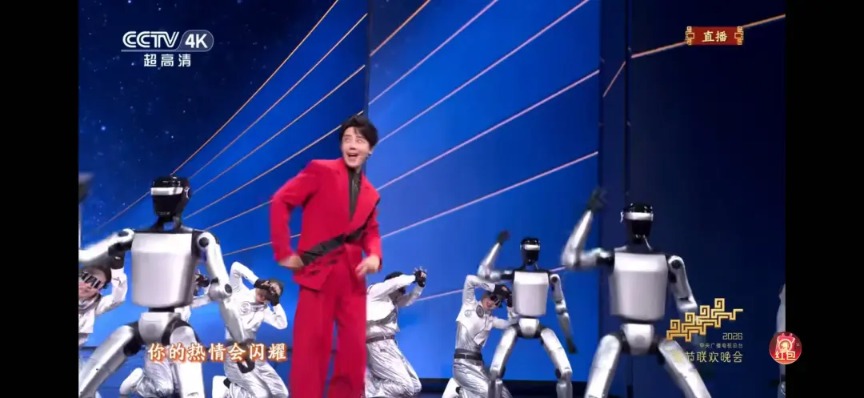 这是机器人首次以“角色”身份介入语言类节目,意味着机器人不再只是舞台背景或舞蹈道具,而是参与到剧情推进和喜剧互动中,对机器人的环境感知、动作响应与演员配合提出了更高要求。